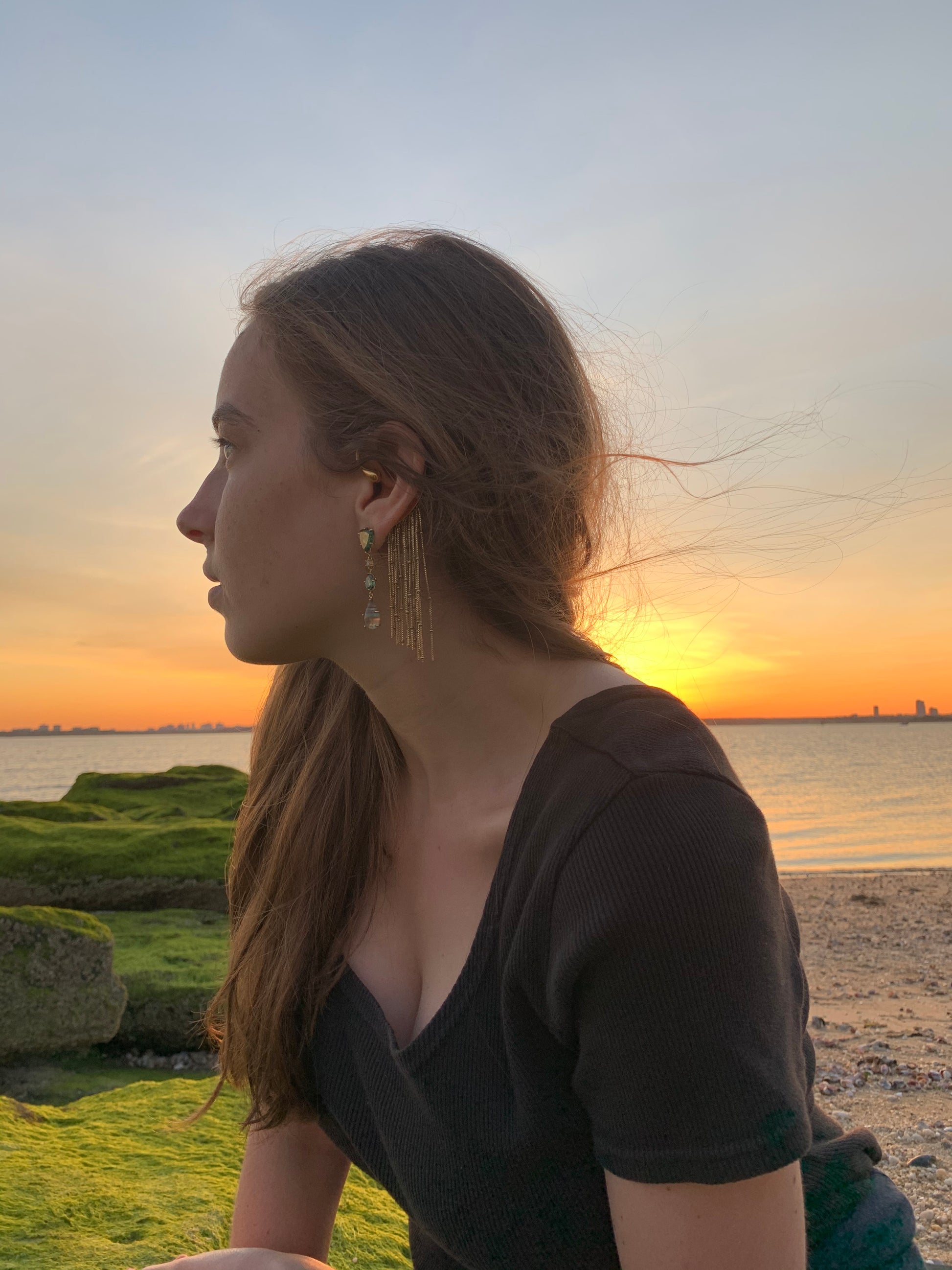 Jan Leslie brings nature & artistry to the luxury jewelry market by juxtaposing materials, colors & textures in untraditional ways to create innovative combinations that are an elusive blend of tribal, classic and contemporary styles. Jan designs her signature jewelry with an unorthodox play of precious , semi-precious, raw & finished stones. Each pair stirs a sense of joyfulness and inherent personal connection to those who select them. Each one of a kind pair is a miniature artwork inspired by breathtaking vistas from all over the world & expresses the uniqueness of the individual wearing them. Diamonds & 18K Gold complement the beauty & color inherent to each ethically sourced one-of-a-kind gemstone. They are anything but ordinary and will stand out in a sea of diamonds. The best part? These statement earrings are surprisingly light.