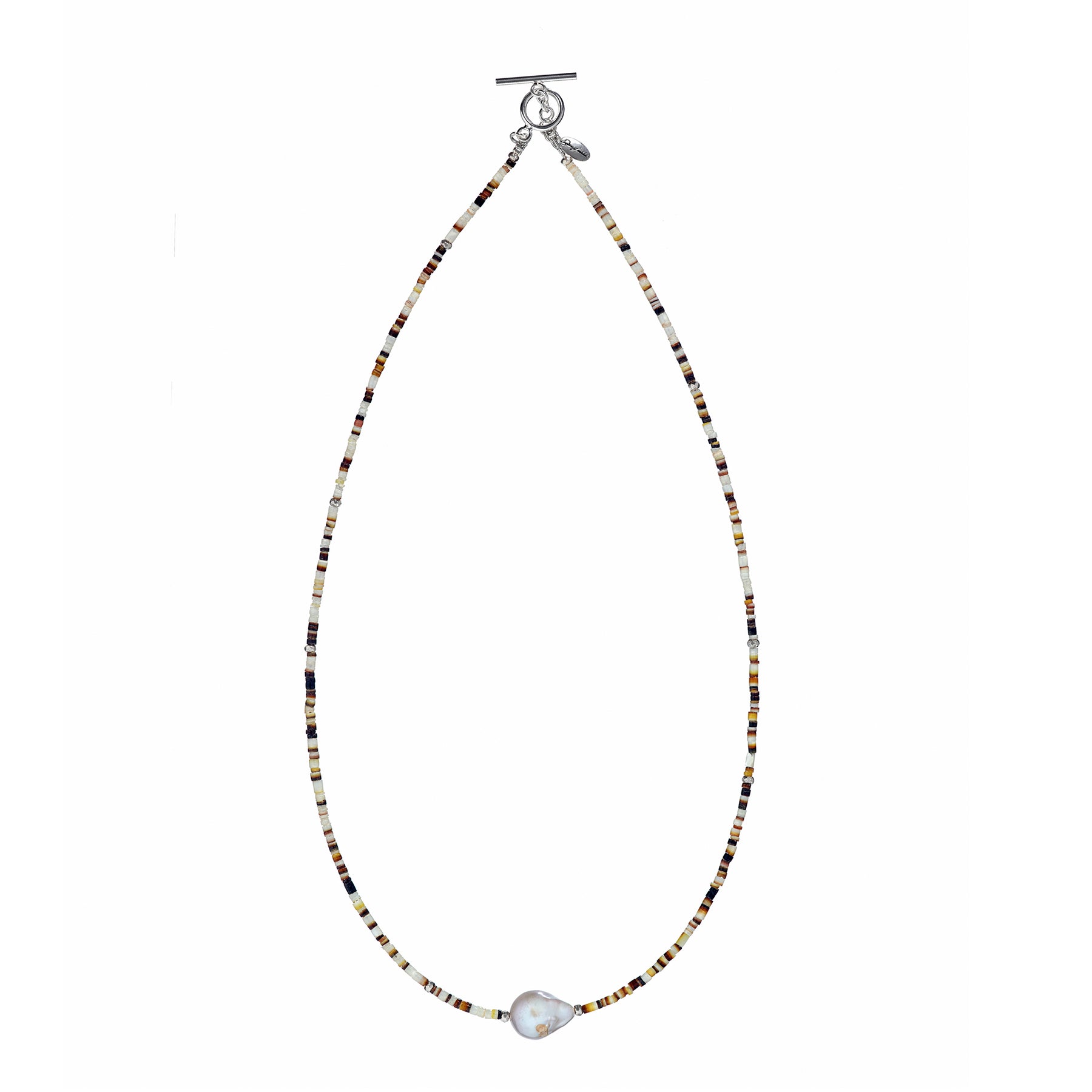 Jan Leslie's shell necklace features a freshwater pearl accent and sterling silver toggle clasp closure.