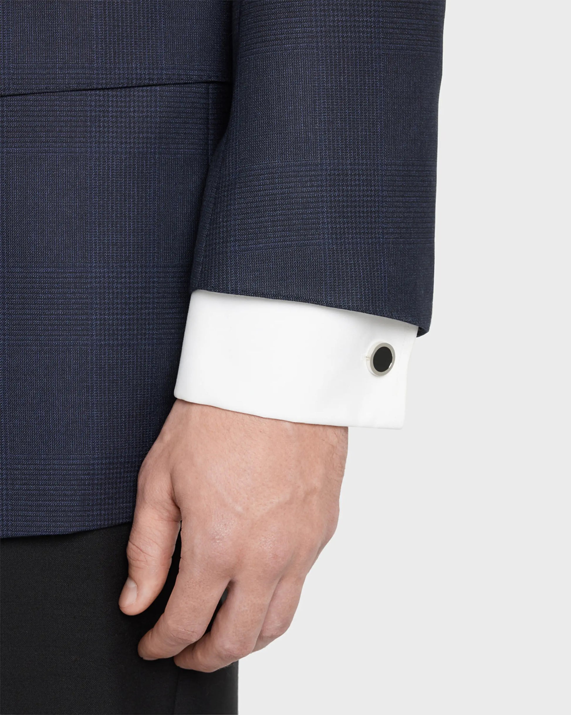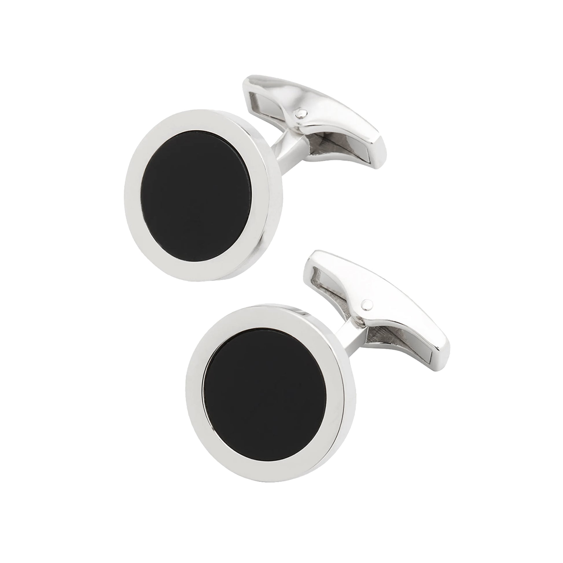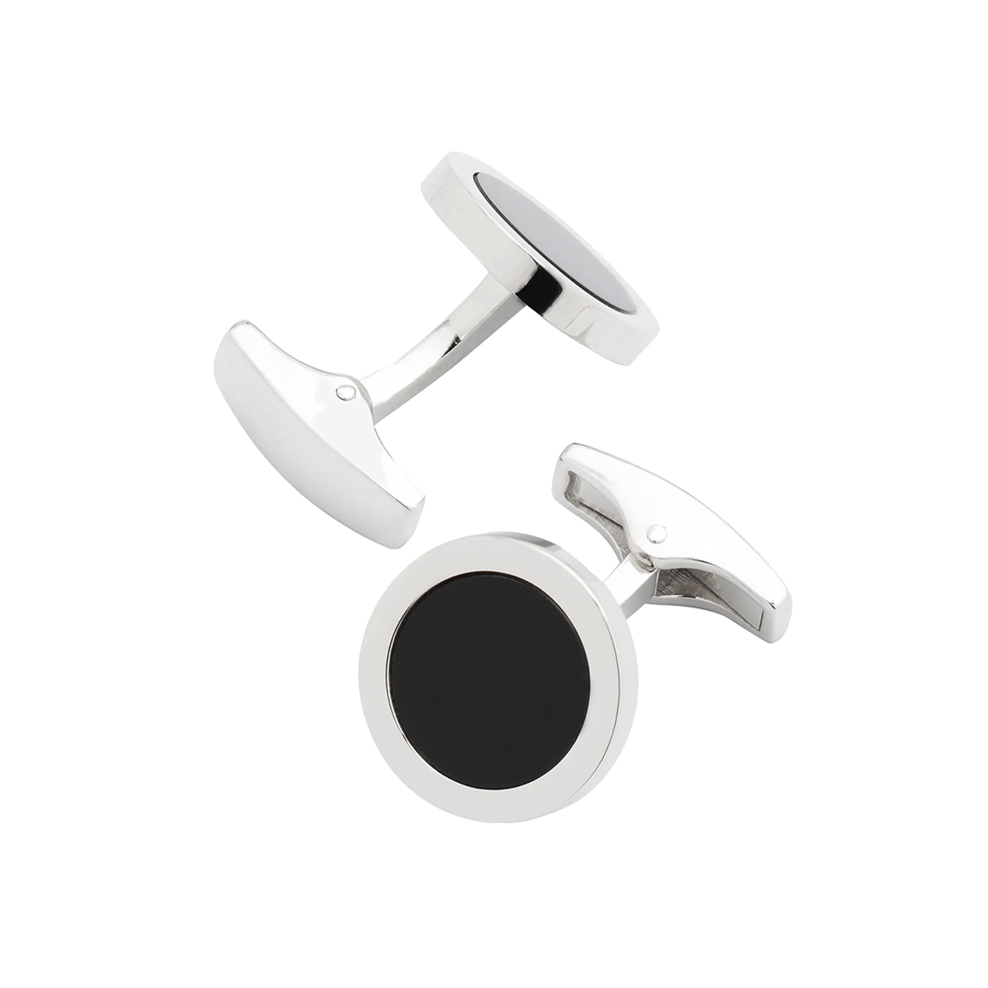 Carefully inlaid Black Onyx gemstones on 925 Sterling Silver cufflinks in a classic round silhouette are an elegant way to elevate any black-tie look.