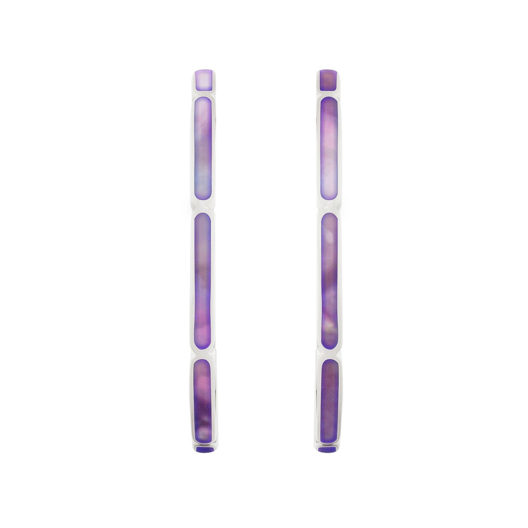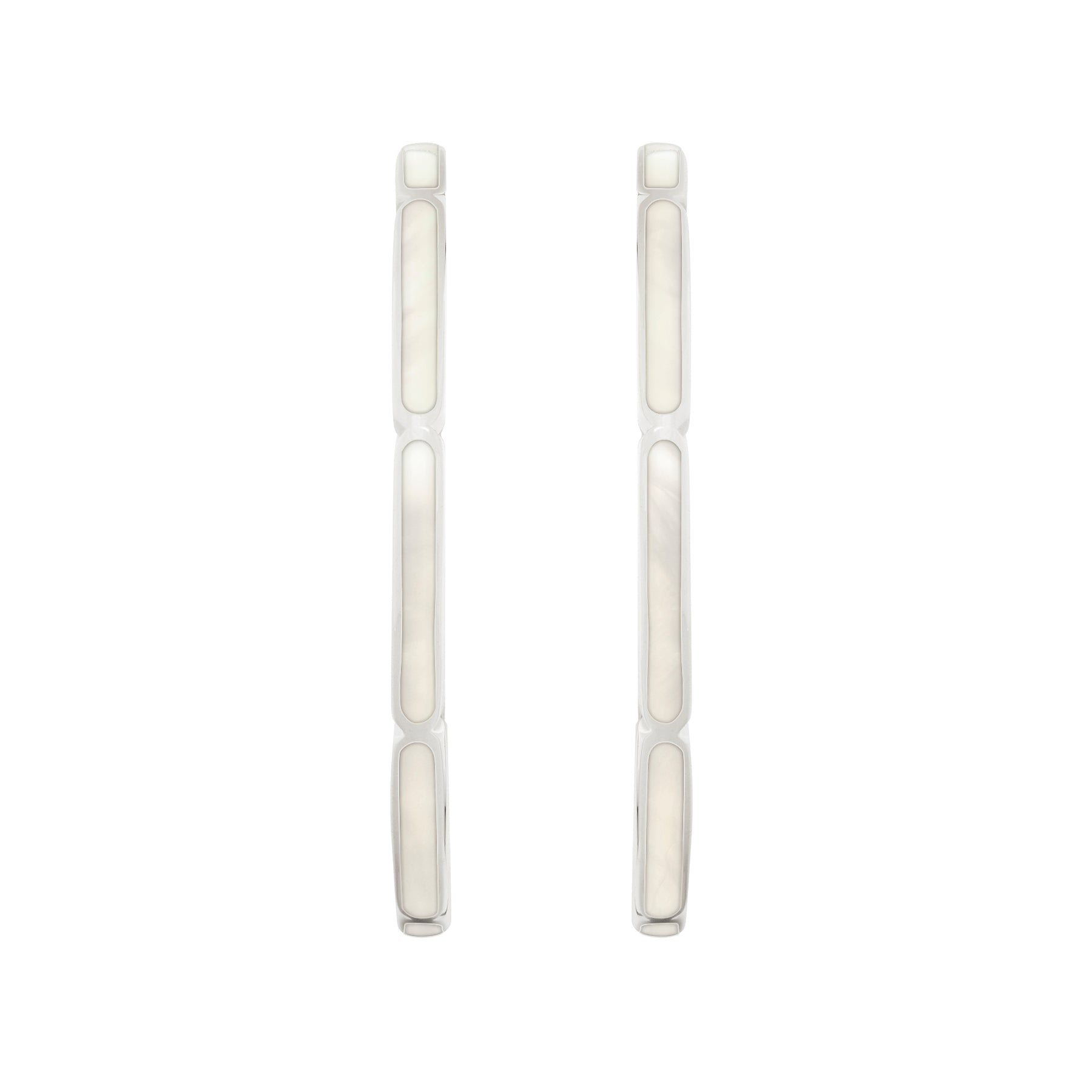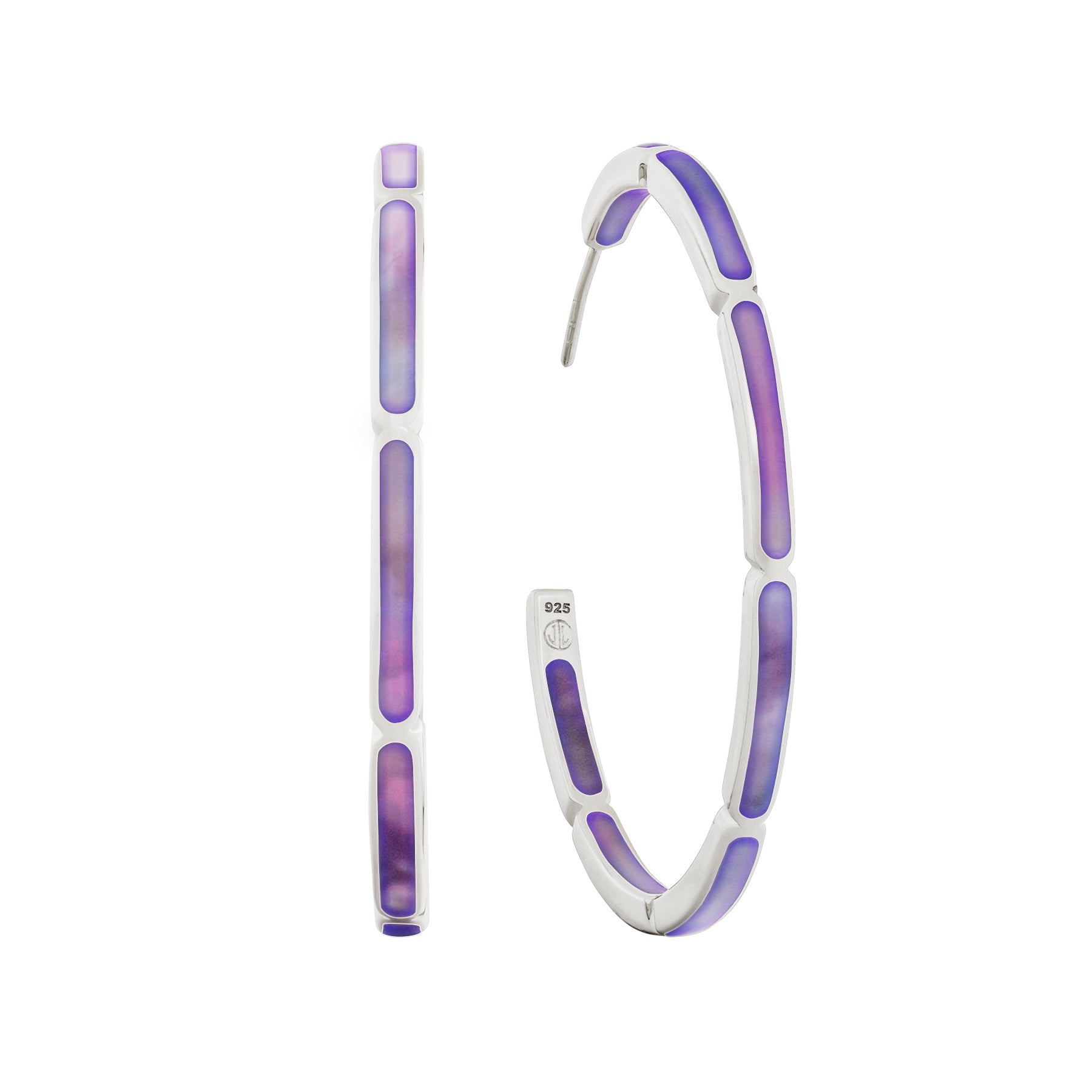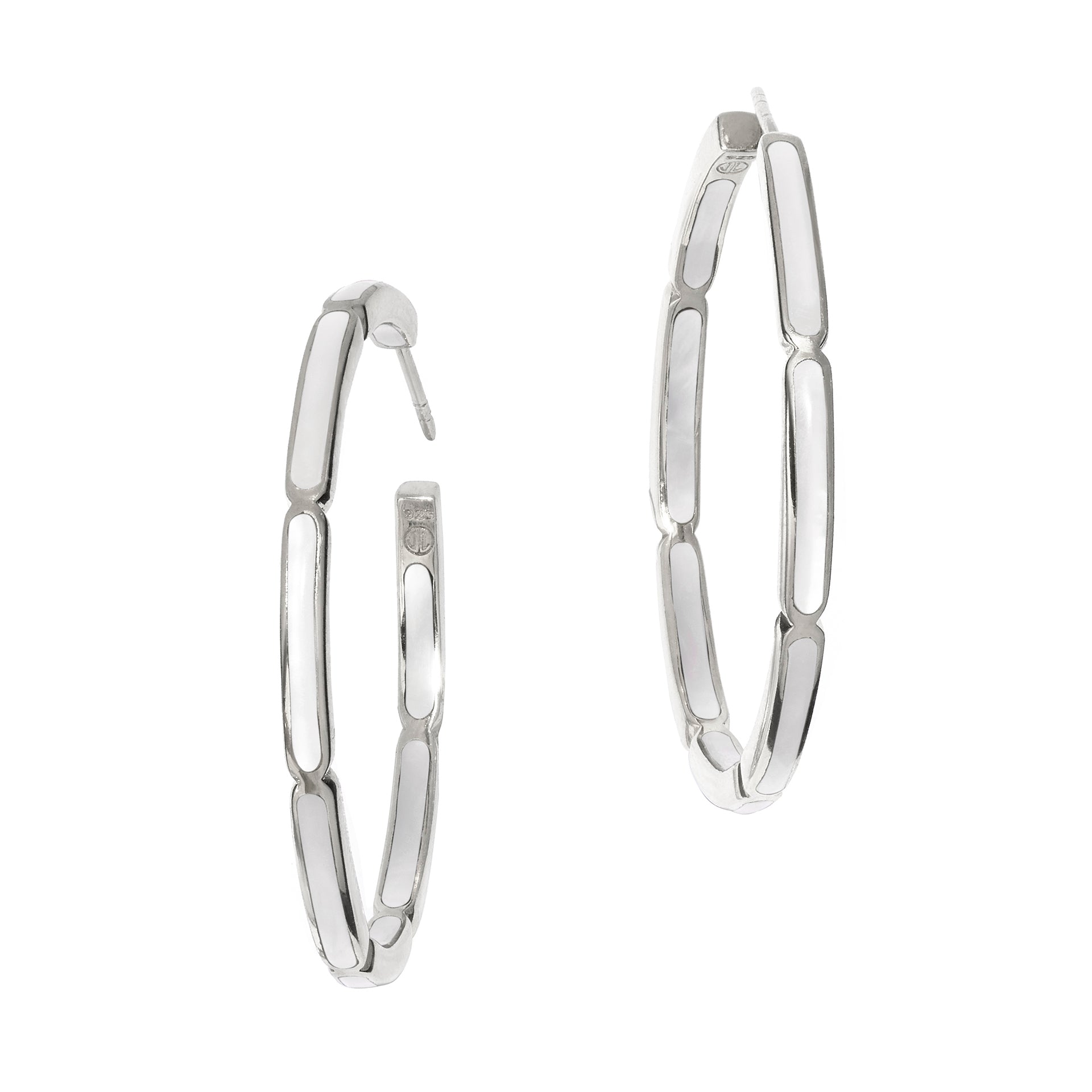 The Dash Collection is structured elegance with a geometric rectangular inlay on the outside and inside of the hoop. Inlays are set by hand. Pair with matching pieces other Jan Leslie Dash gorgeous styles.