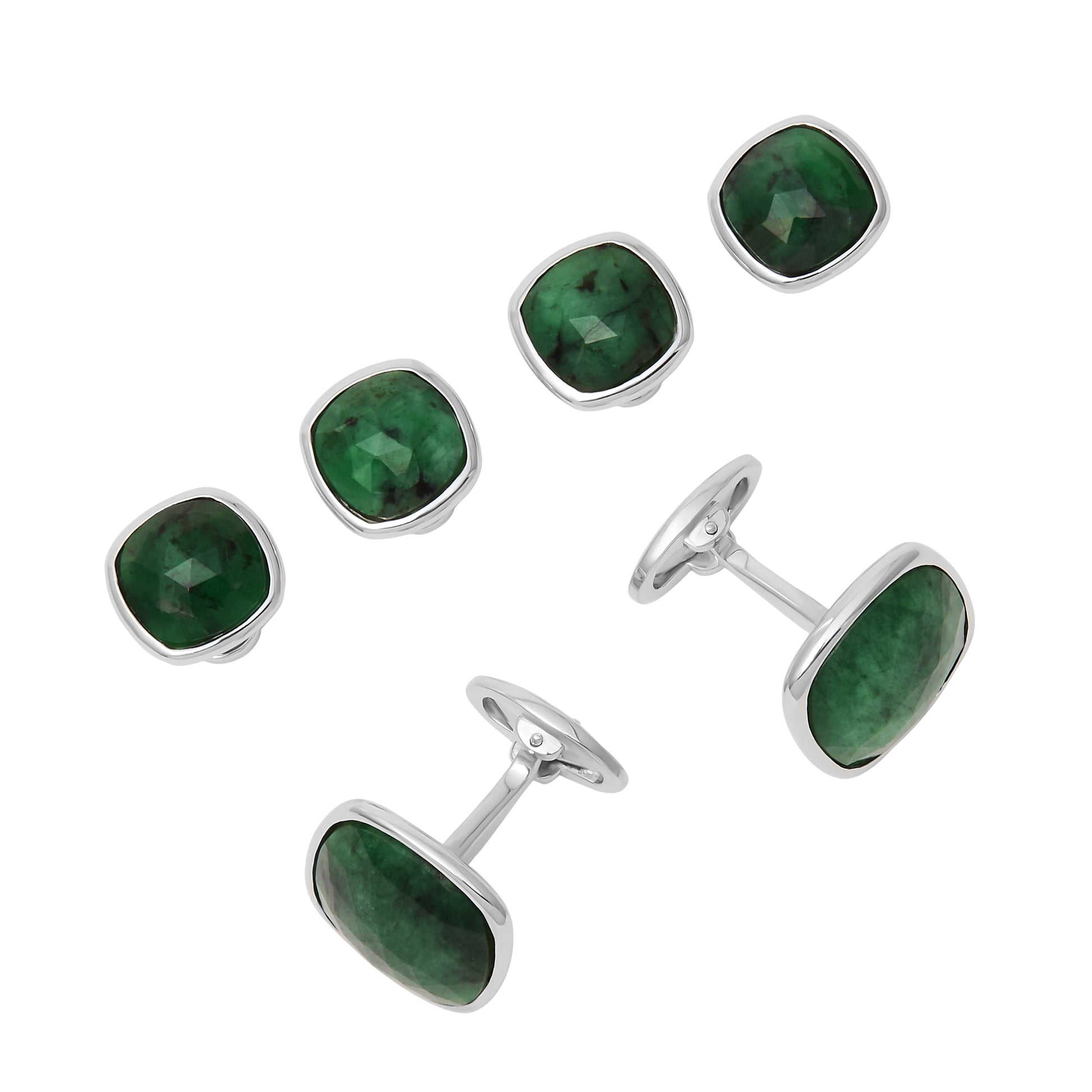 Faceted Emerald Sterling Cufflinks & Stud Set