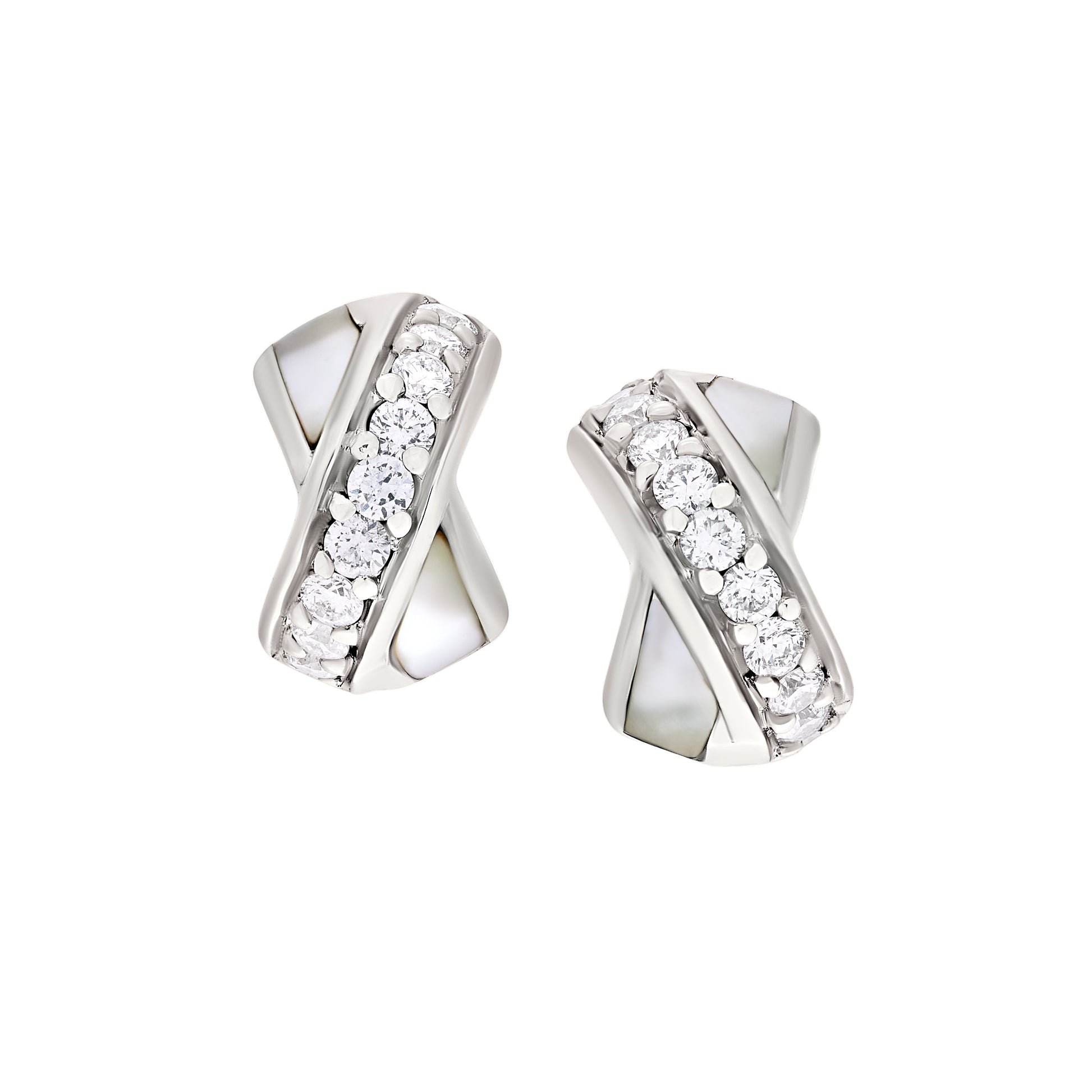 Elegant crossover stud earrings crafted in sterling silver featuring an interlocking silhouette that creates a modern yet timeless aesthetic.