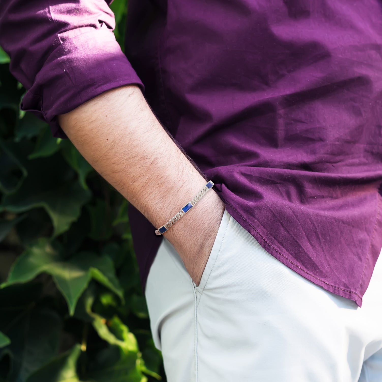 Dash collection gemstone bracelet with sterling silver curb chain.