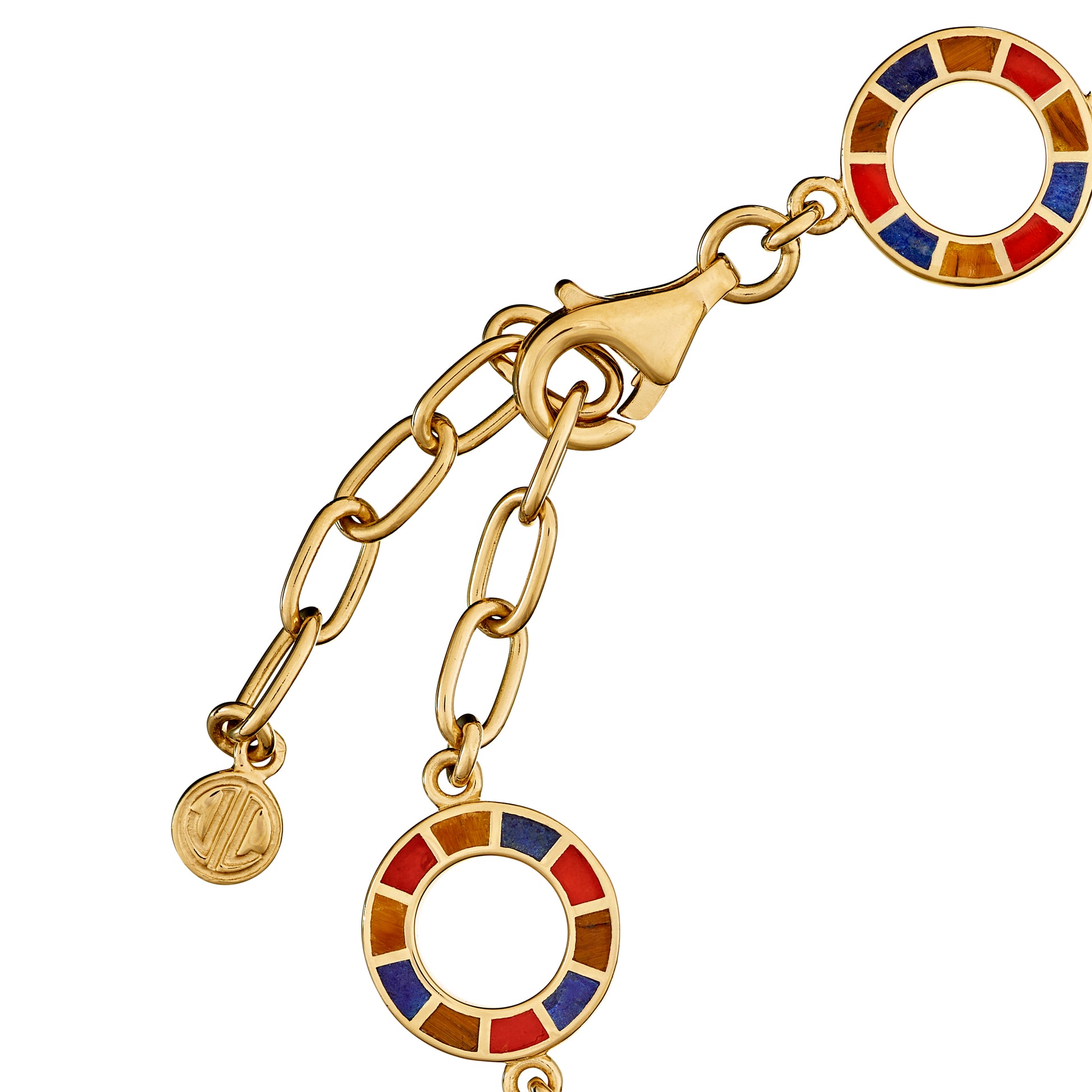 This Jan Leslie bracelet features genuine lapis, carnelian, and tiger's eye gemstones hand-set in 18-karat gold-plated sterling silver. Add with matching pieces from the Jan Leslie Dash collection.