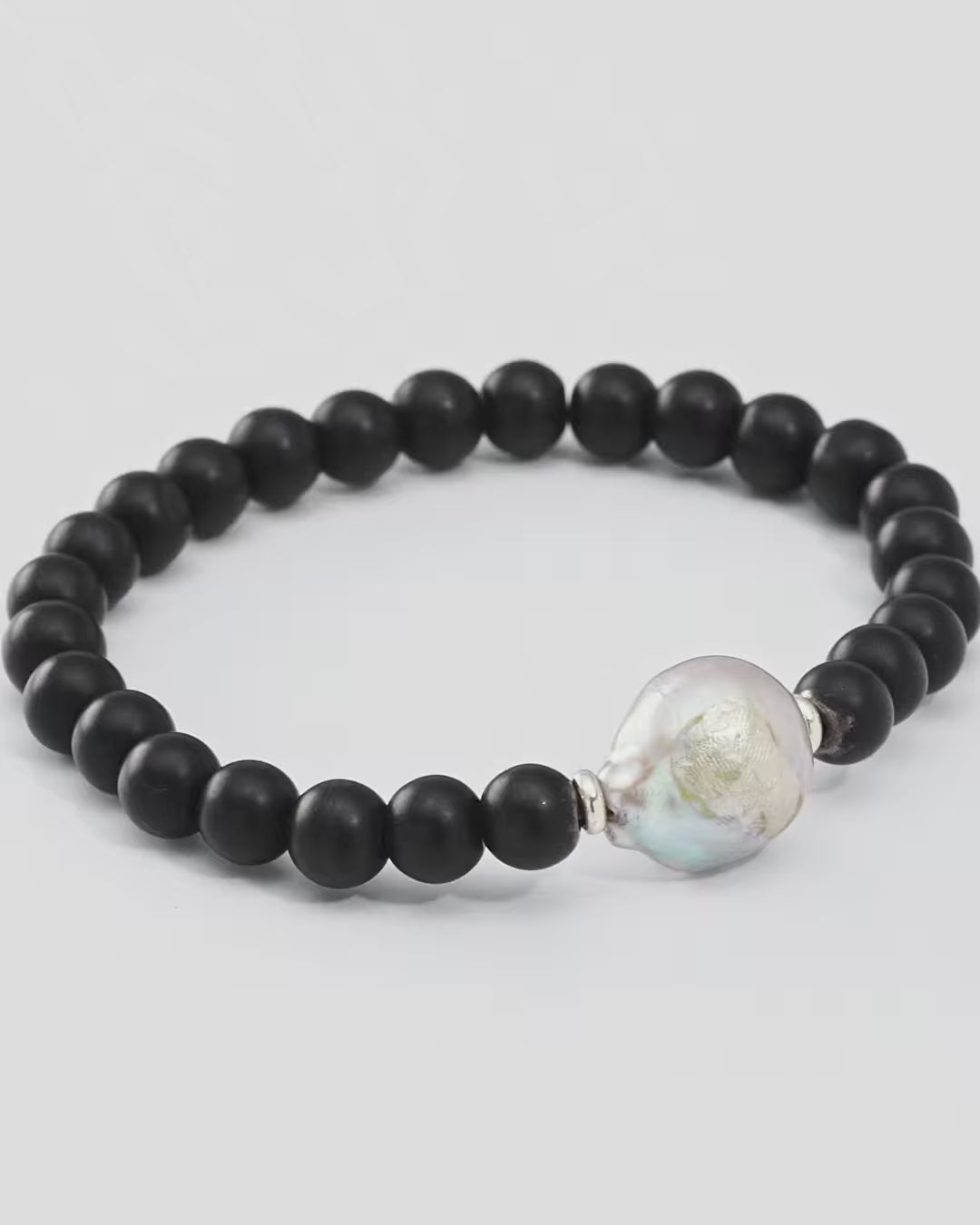 - Stone: naturally white uncultured freshwater pearl and Matte black onyx with Sterling Silver