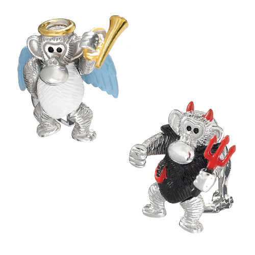 Moving Monkey Enamel Devil & Angel Sterling Silver Clip-on Earrings I Jan Leslie