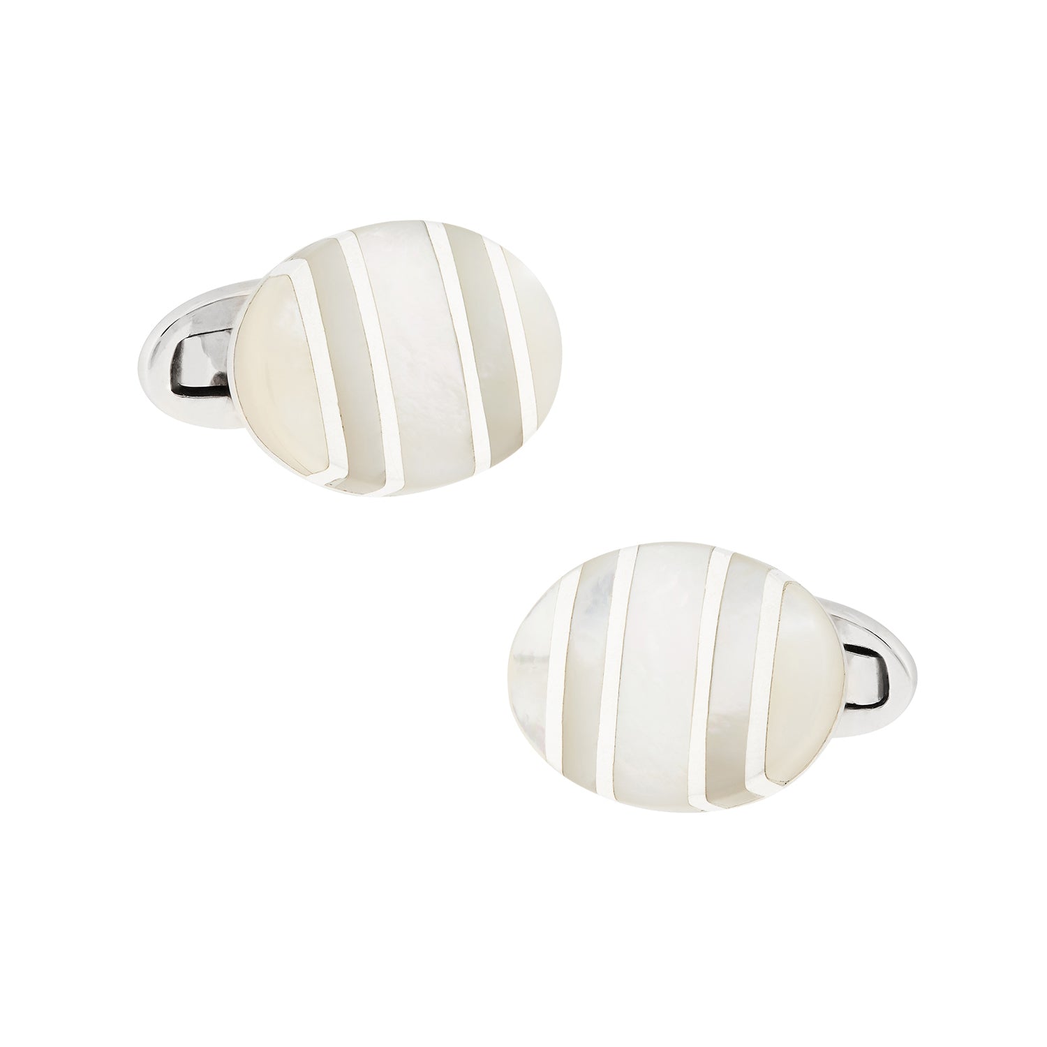 These White Mother of Pearl Sterling Silver Stripe Cufflinks in a classic oval silhouette are an understated and refined wardrobe must.