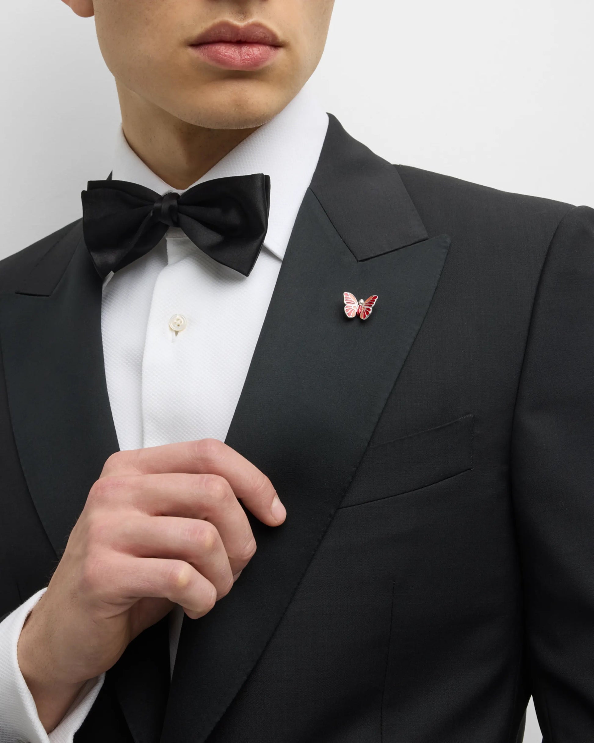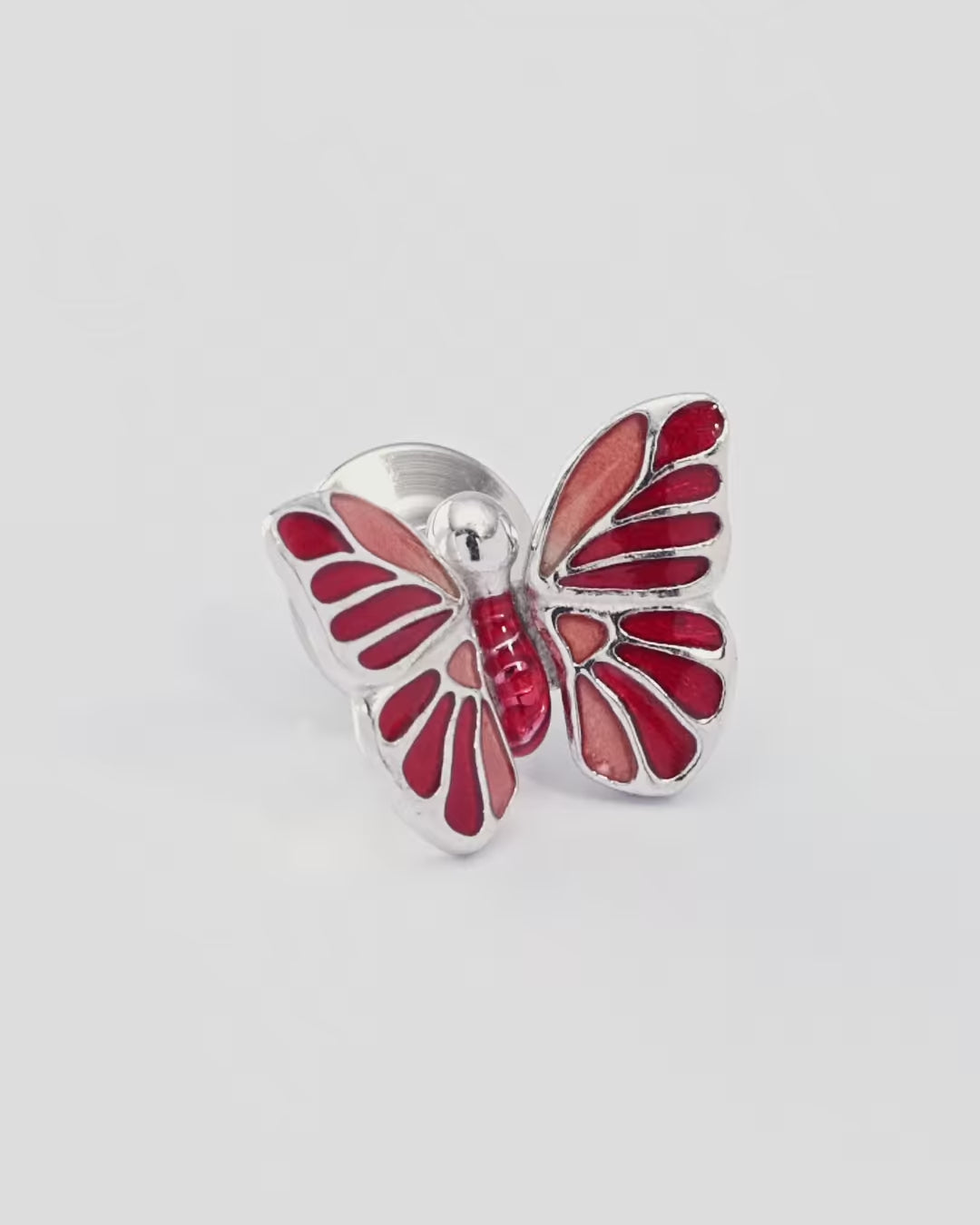 Butterflies are free to fly. This 925 sterling silver jacket lapel pin is hand-painted in shades of red enamel. Articulated wings gently flutter for charmingly lifelike detail. This vibrant unisex design is great for men or women.