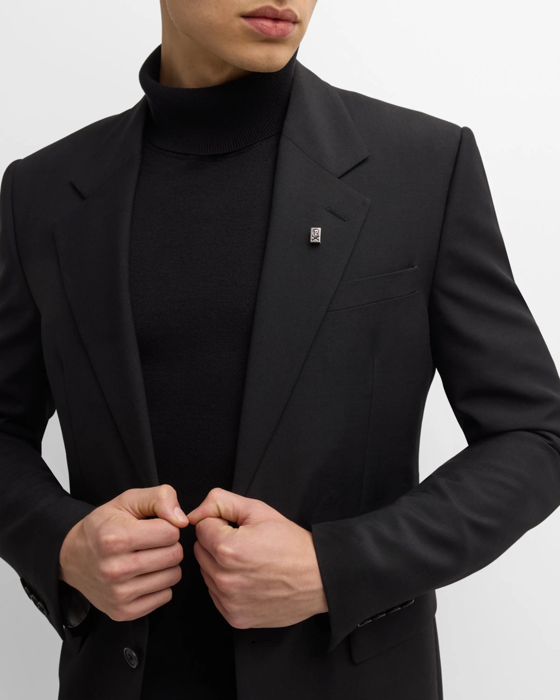 Skull and crossbones lapel pin.