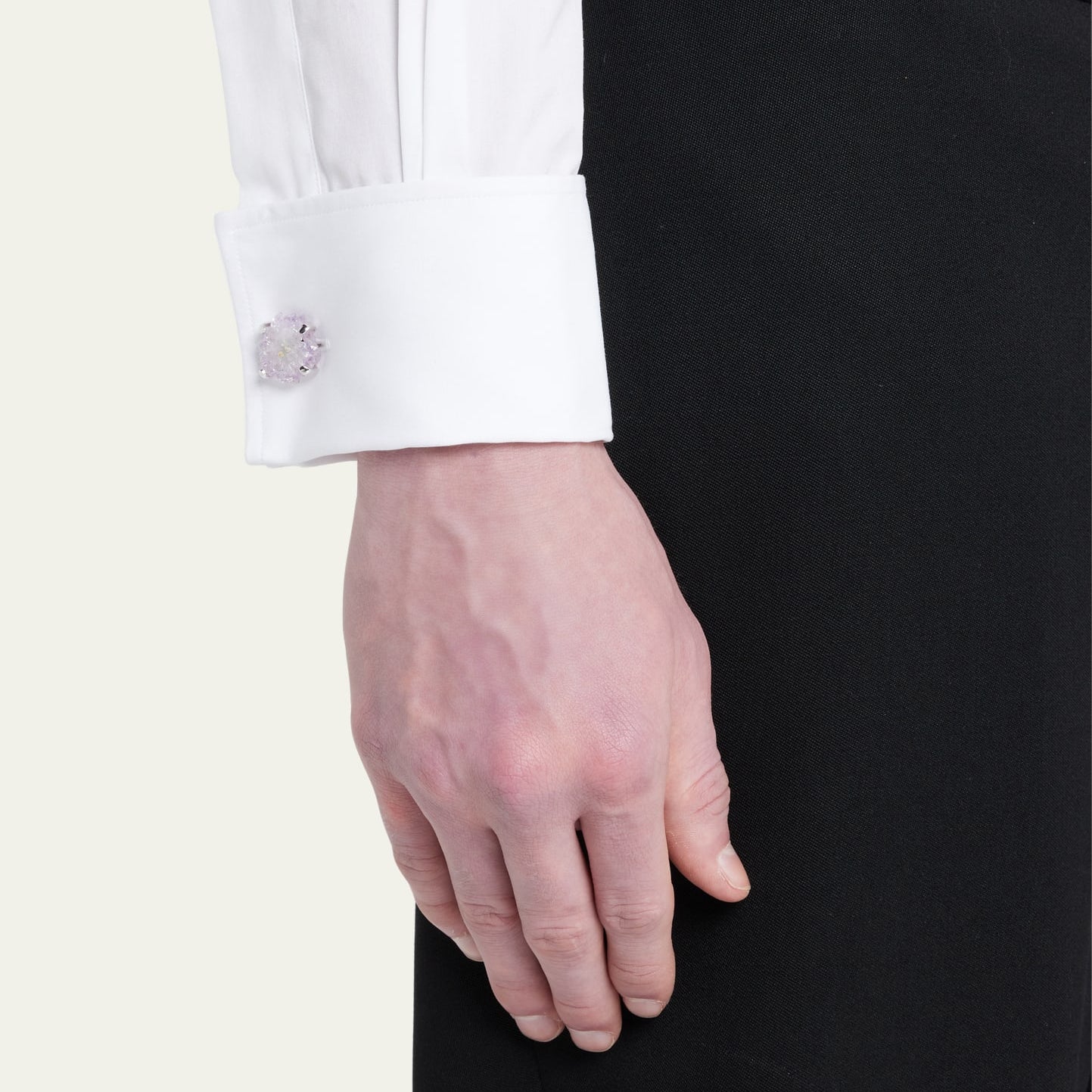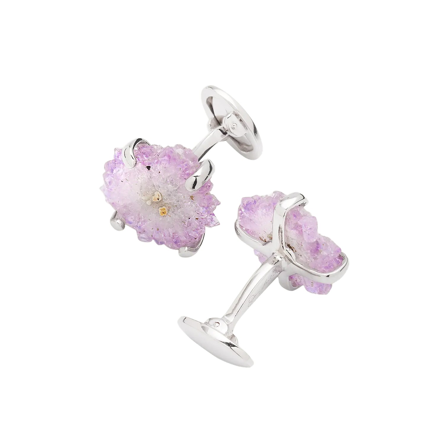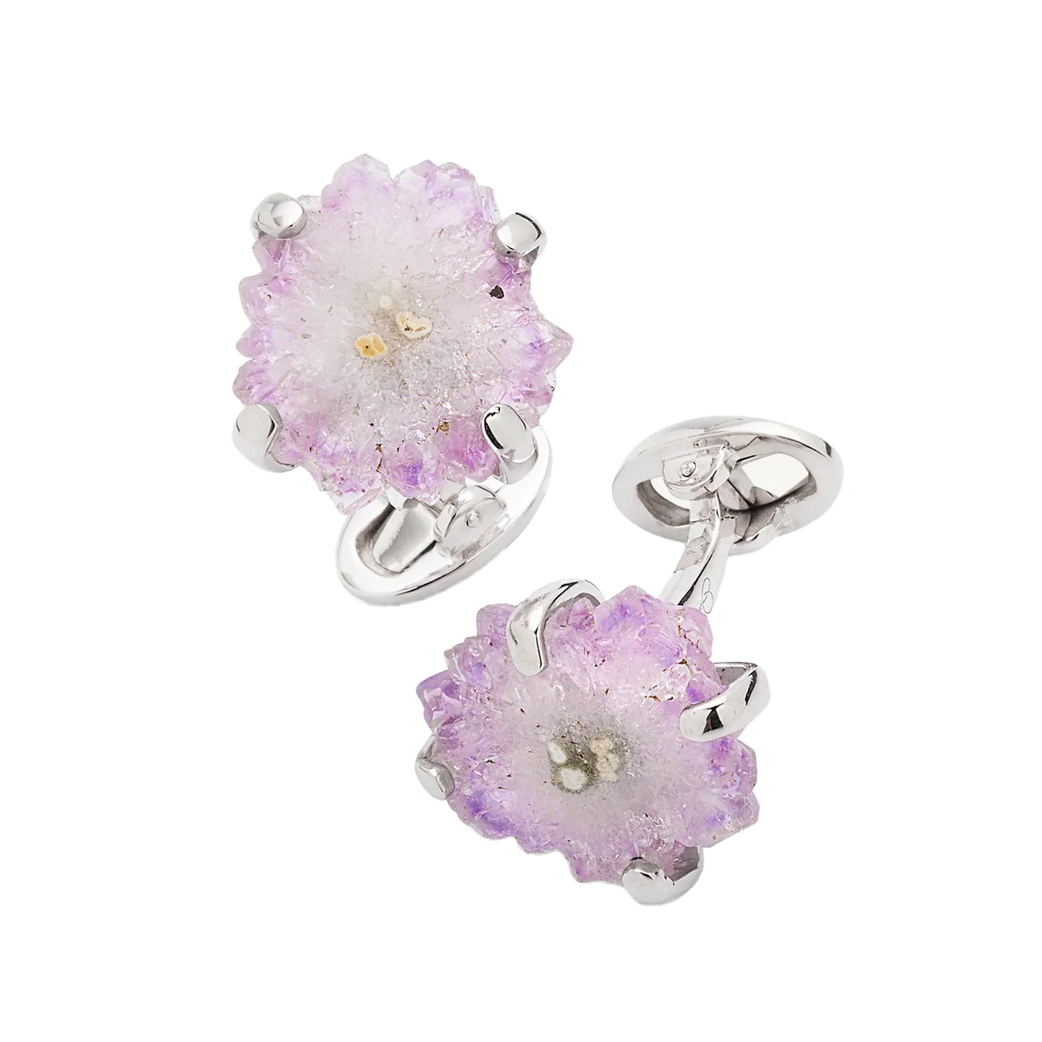 Rare, hand-selected stalactite slice naturally embedded with soft lavender amethyst crystals, revealing delicate, ethereal patterns formed over thousands of years. Individually set by hand in solid 925 sterling silver for a truly one-of-a-kind statement.