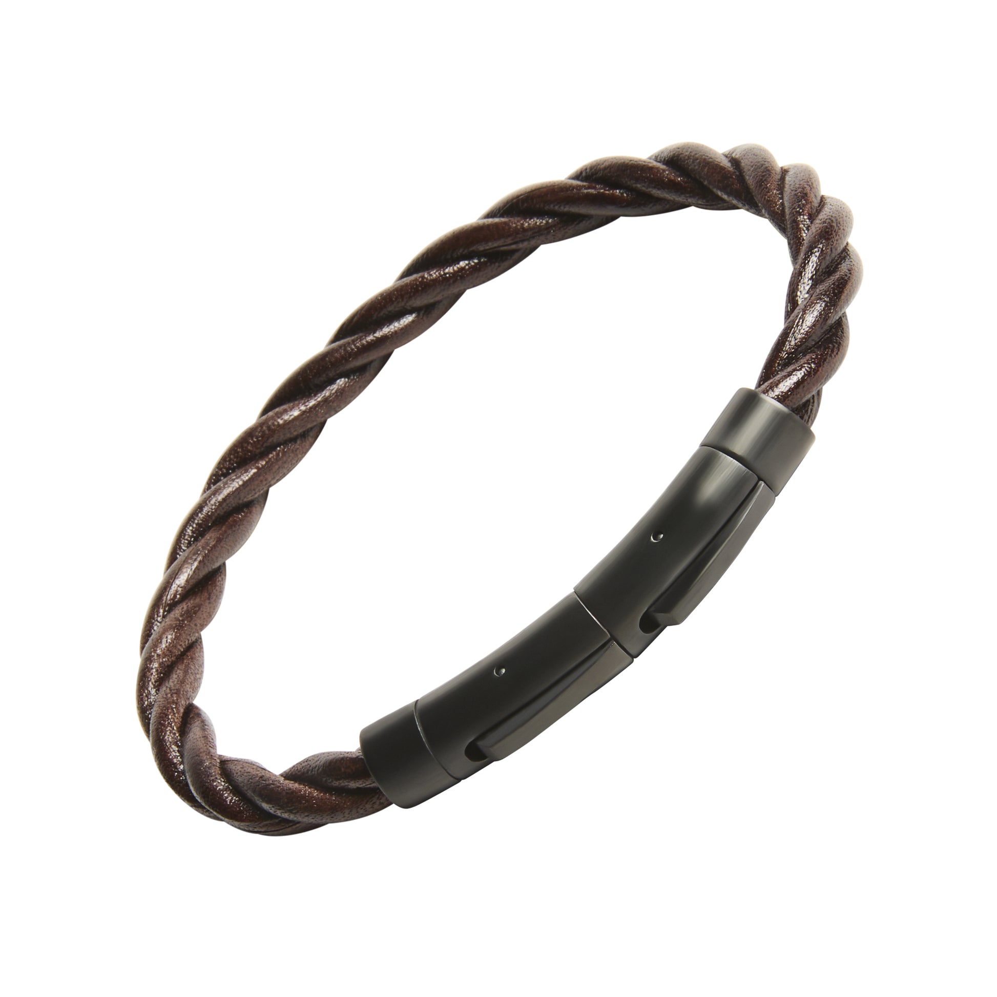 Twist Braided leather magnetic bracelet accented with a magnetic closure.